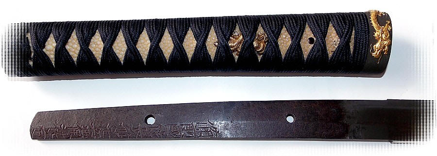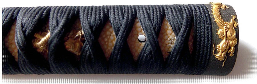 ножнах черный шнур сагео ручного плетения. Рукоять меча - итомакизука.