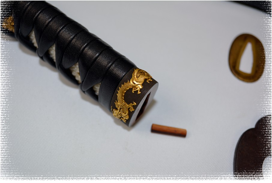 Детали фучи-гашира выполнены по теме атакующего Дракона.. Ножны - сая - многослойно покрыты