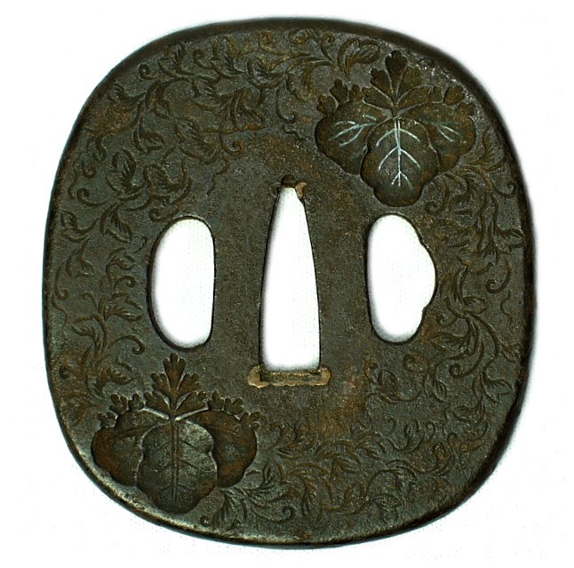 Антикварная цуба японского меча с растительным орнаментом