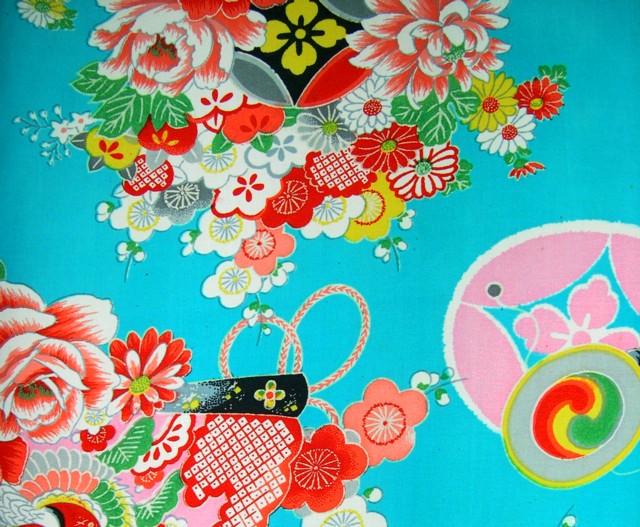 Японское кимоно молодой девушки из плотного бирюзово -голубого